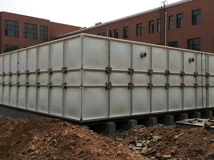 四、用固定角鐵銜接底板和槽鋼,使玻璃鋼水箱箱體愈加牢固的固定在槽鋼基礎上。
