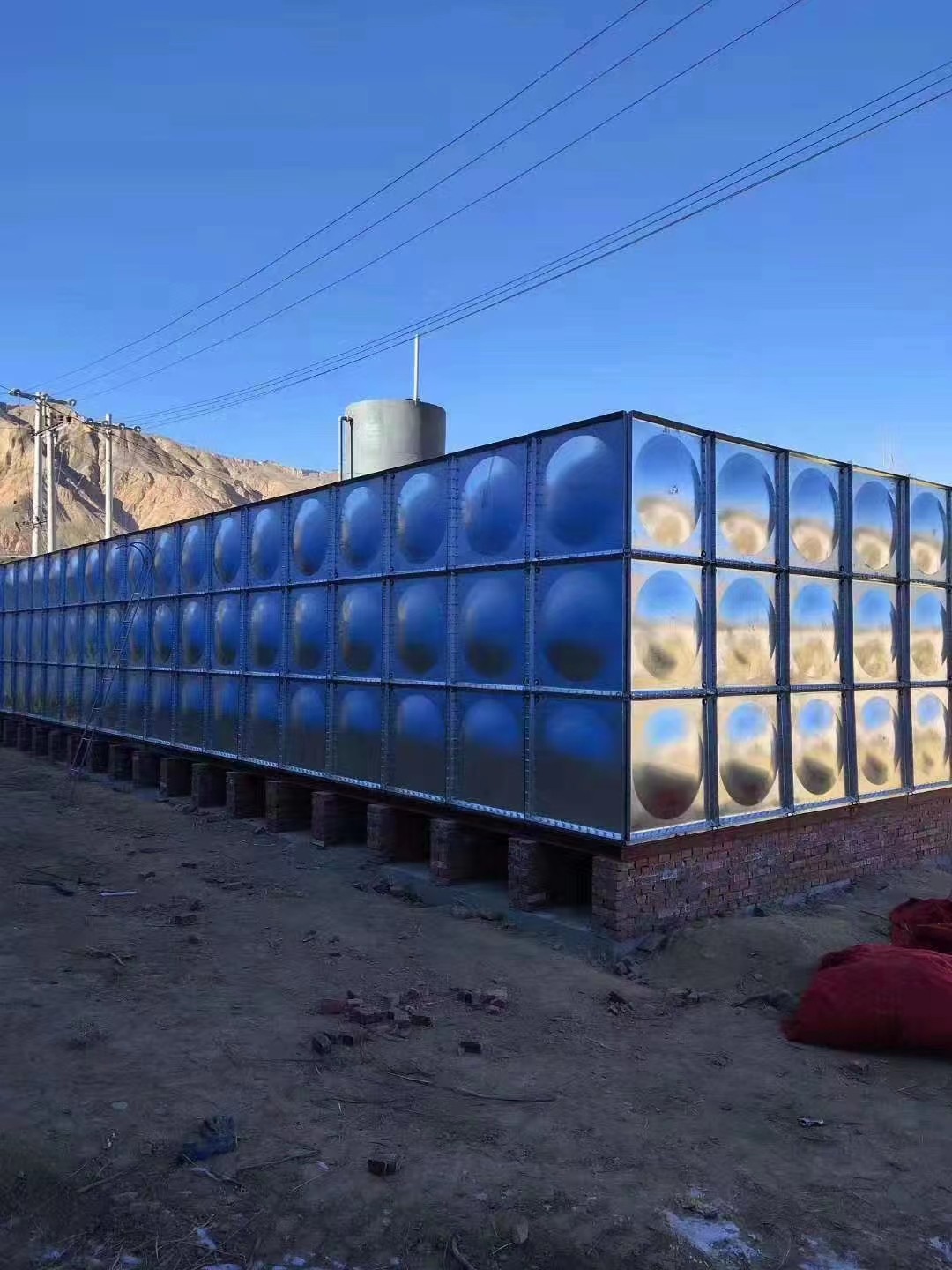 二、鍍鋅鋼板水箱的底板根據長寬高擺正好位置,然后用螺栓和膠條固定,依次是側板和頂板,我們在安裝鍍鋅鋼板水箱的底板前,要把鍍鋅鋼板水箱的拉筋與支撐安裝好,完成框架后,整體的鍍鋅鋼板水箱就安裝好了,我們就可以驗收使用鍍鋅鋼板水箱了。
